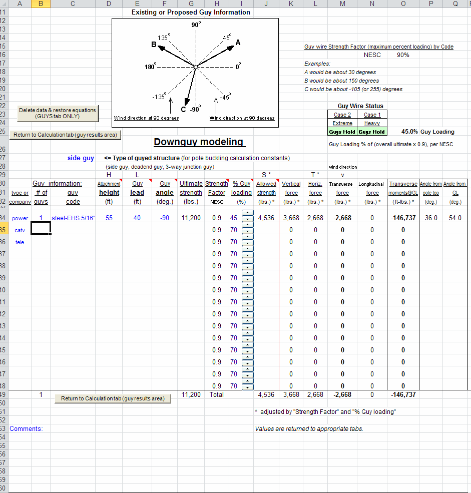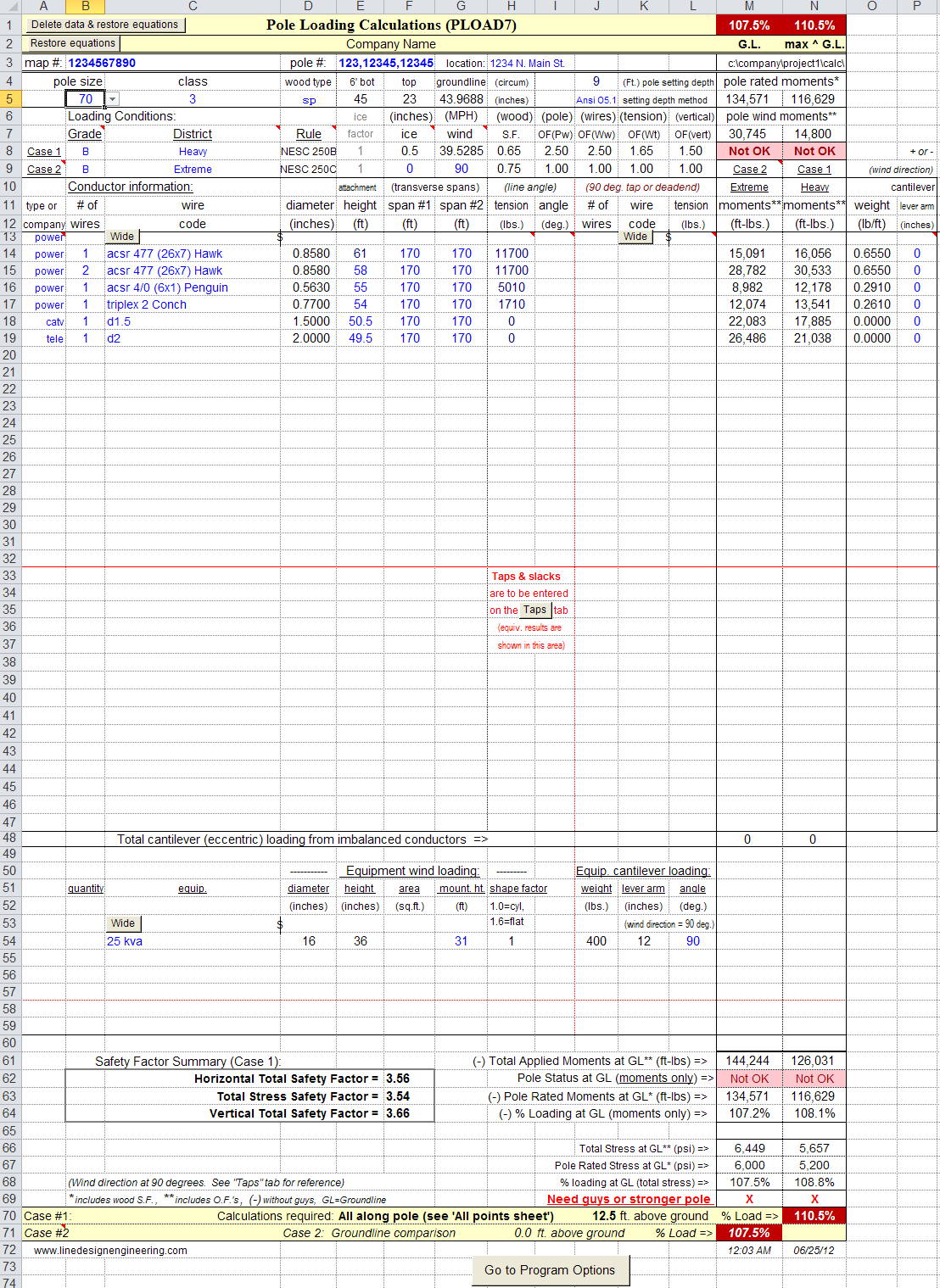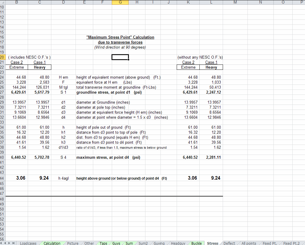 Consulting, Accident Investigation & Expert Witness Services: Engineering consulting services are available to check &/or verify your existing or proposed pole loading analysis and guy/anchor calculations. Additional consulting, accident investigation and expert witness services are available in the following areas: National Electrical Safety Code (NESC) Rules, pole loading analysis, guys & anchors, overhead line design, conductor sag & tension, conductor clearance & blowout requirements, NESC compliance audits, system reliability improvement audits, and line inspections. Other consulting services include fuse coordination / fault studies, circuit loading, voltage drop analysis, capacitor bank & control recommendations, system inventories, and other miscellaneous engineering services. Pole Loading Software: LineDesign Engineering offers PLOAD7, a transverse & vertical pole loading software. PLOAD7 is an economical pole loading analysis program for overhead pole lines, utilizing the strength & loading requirements of the NESC and GO95. Also included are column buckling and guying modules. Click the links above for screen shots. Recent program changes have added steel, concrete & FRP poles. Several other enhancements have also been added. Other